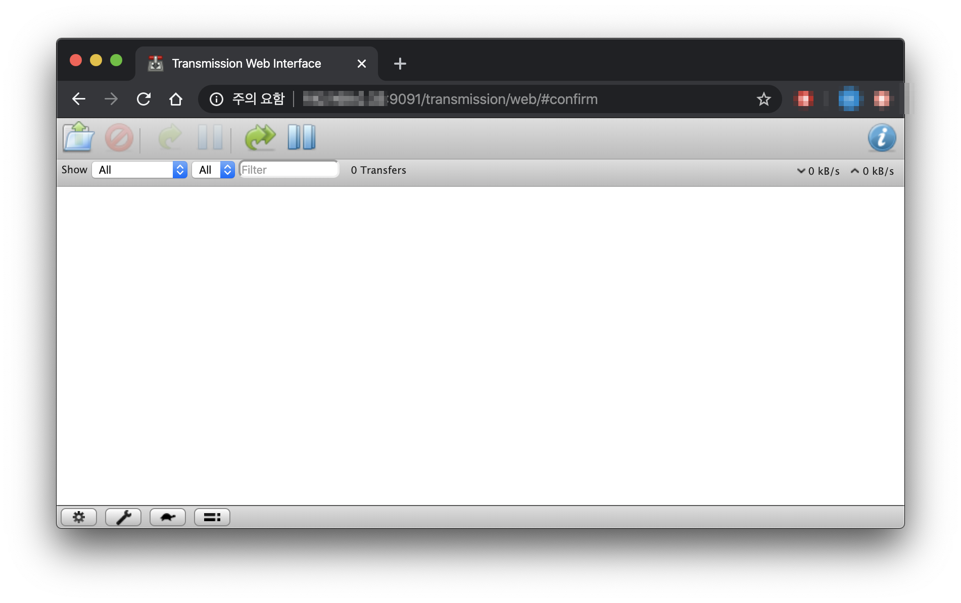 <NAS주소>:<포트번호>로 접속하면 아래처럼 Transmission Web Interface를 사용할 수 있다.