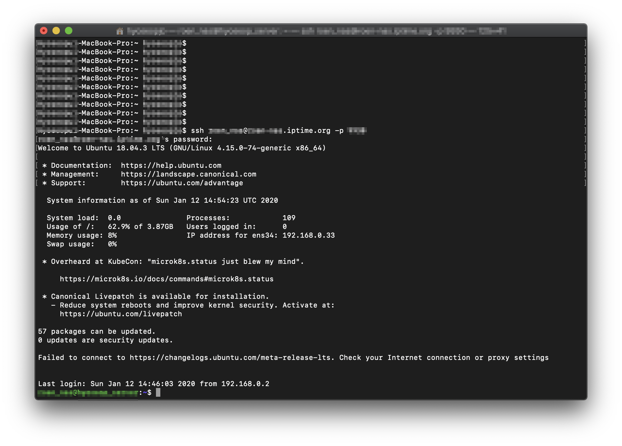 $ ssh 계정이름@호스트이름.iptime.org -p 외부포트