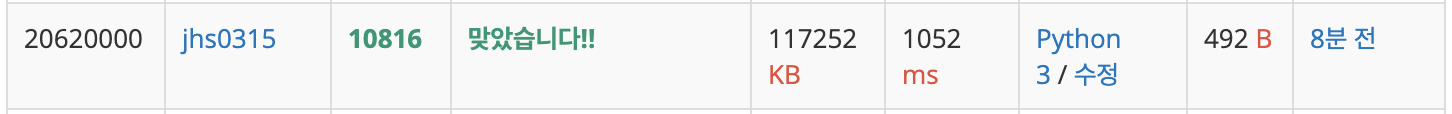 Hash Table로는 상수시간에 풀리는 문제라 Python3로도 결과가 잘 나온다.