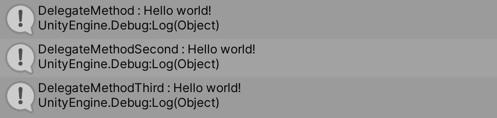 Debug.Log("DelegateMethodThird : " + message);