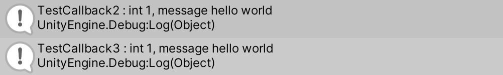 Debug.Log($"TestCallback3 : int {num}, message {message}");