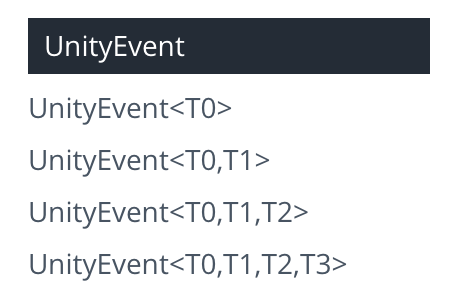 UnityEvent는 최대 4개의 인자를 갖는 UnityAction을 사용할 수 있다.