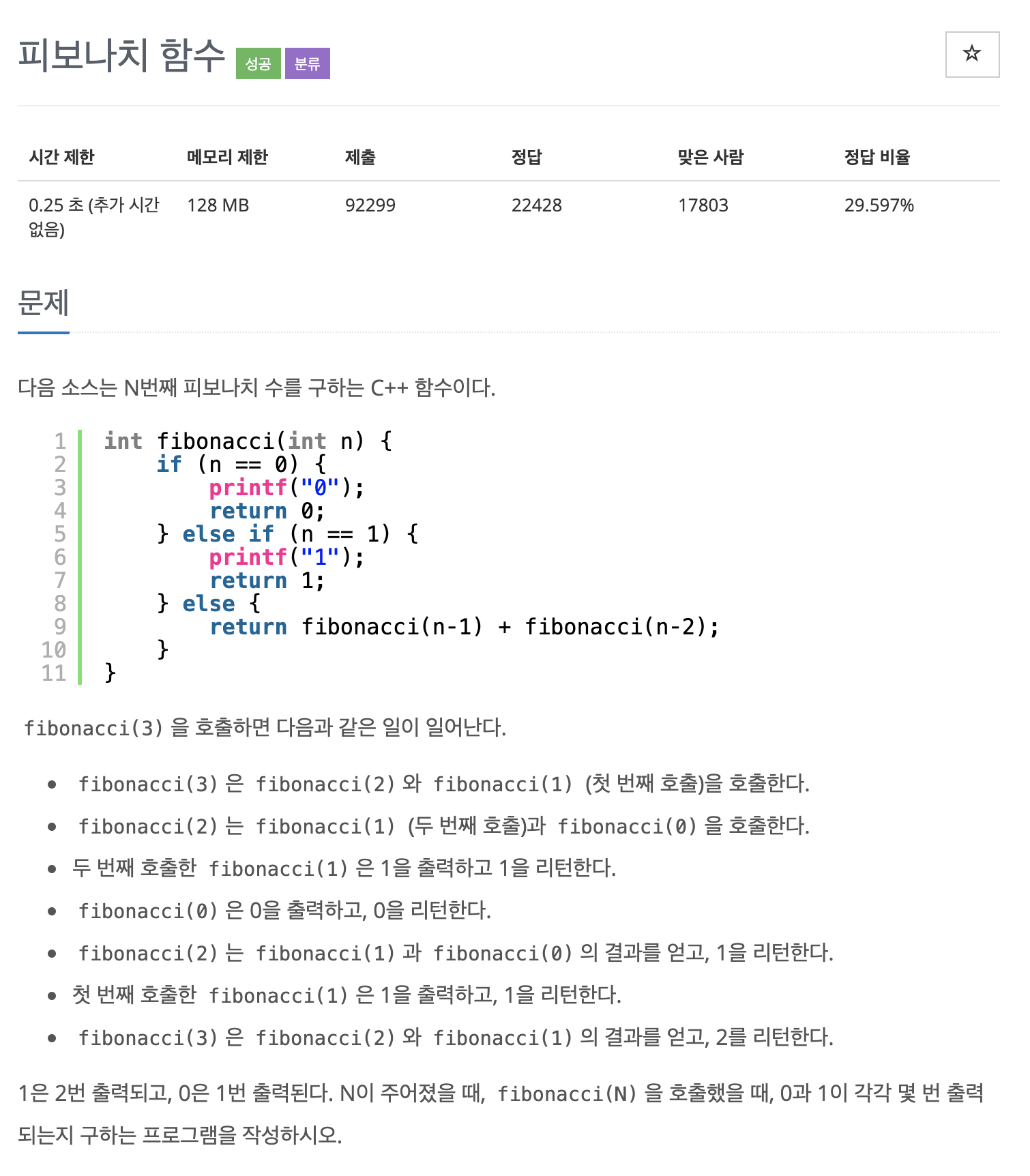 호출되는 Fibonacci(0)과 Fibonacci(1)의 횟수를 구해야 한다.