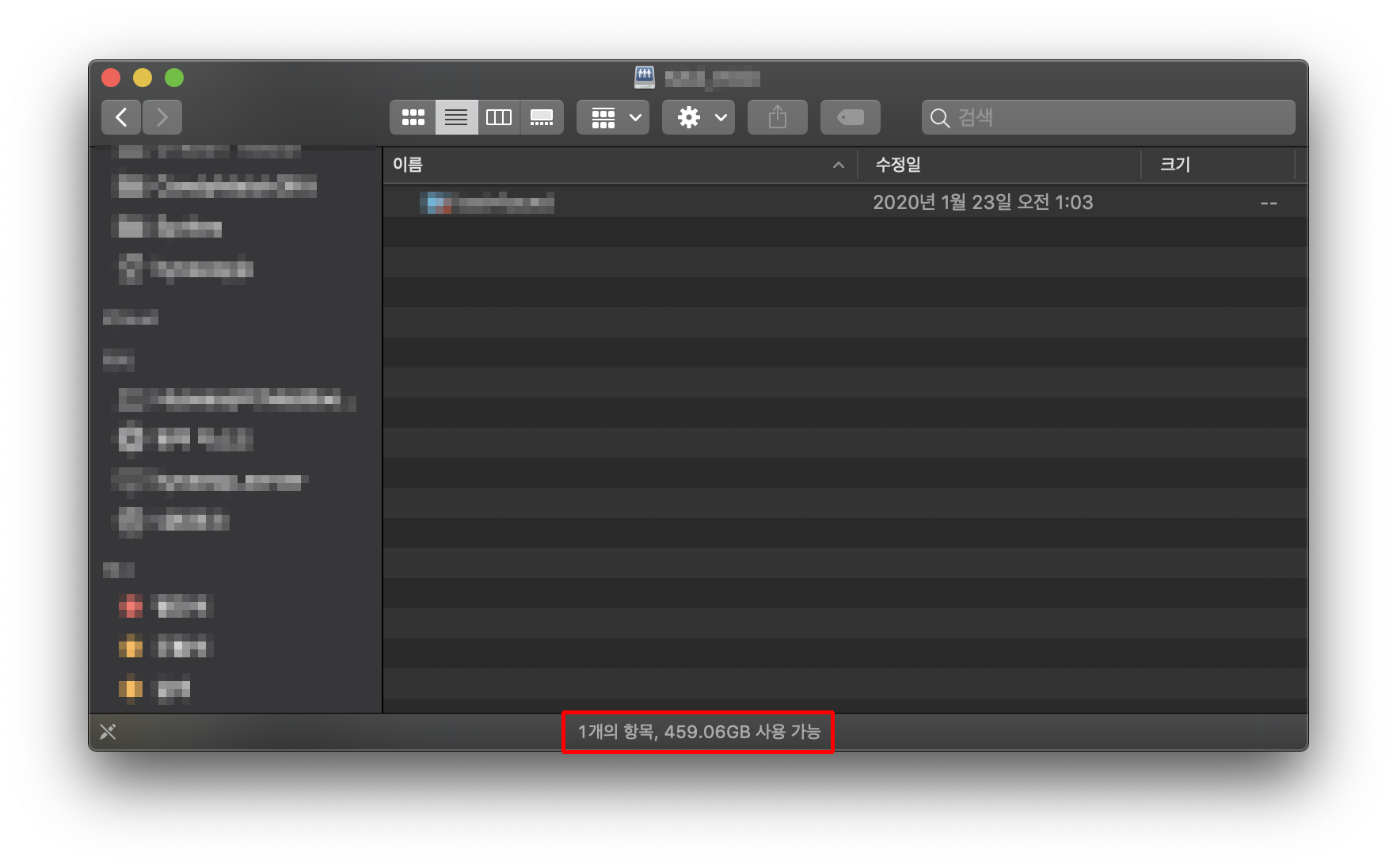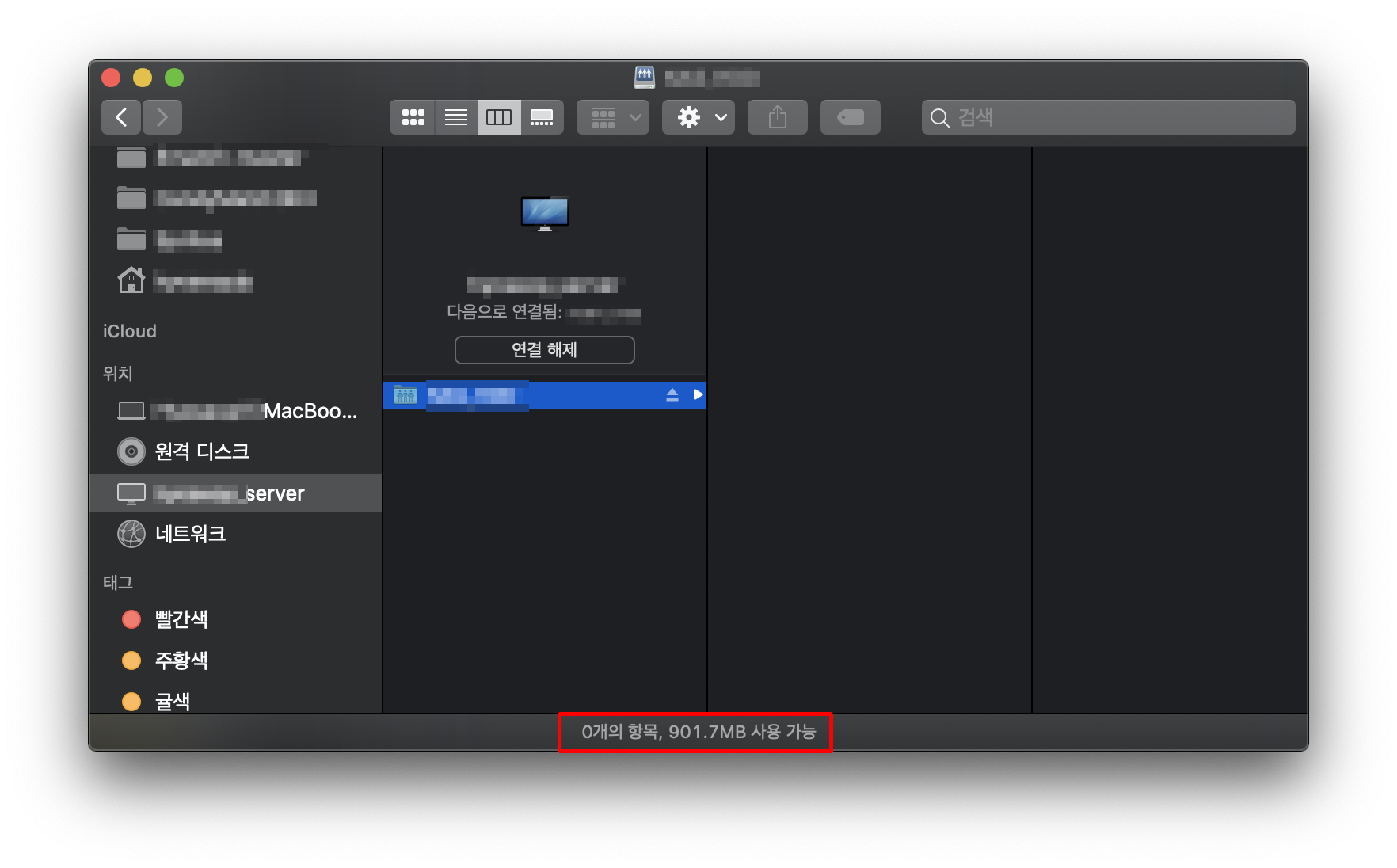 Finder에서 다시 접속해보면 정상적으로 용량이 표시된다.