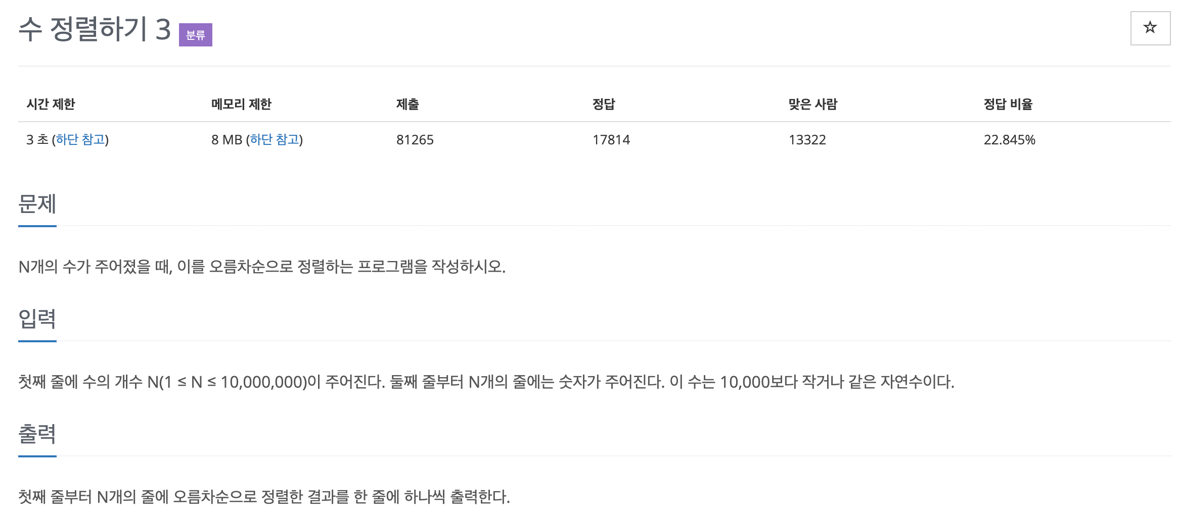 (백준 컴파일러 중 Pypy는 Python3보다 속도가 약간 빠르지만 메모리는 더 많이 사용한다. 이 문제에서는 메모리 제한이 8MB밖에 되지 않기 때문에 Python3를 사용한다.)